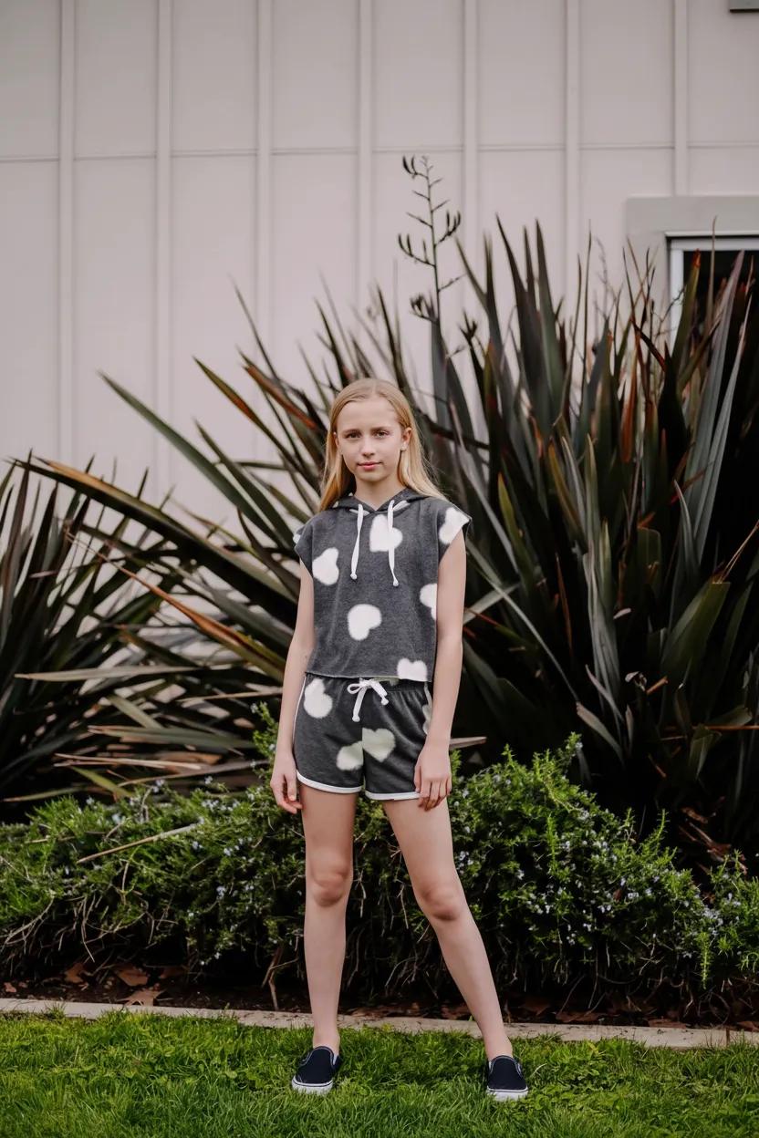 Hooded Muscle Pullover (White Fuzzy Heart Pattern)