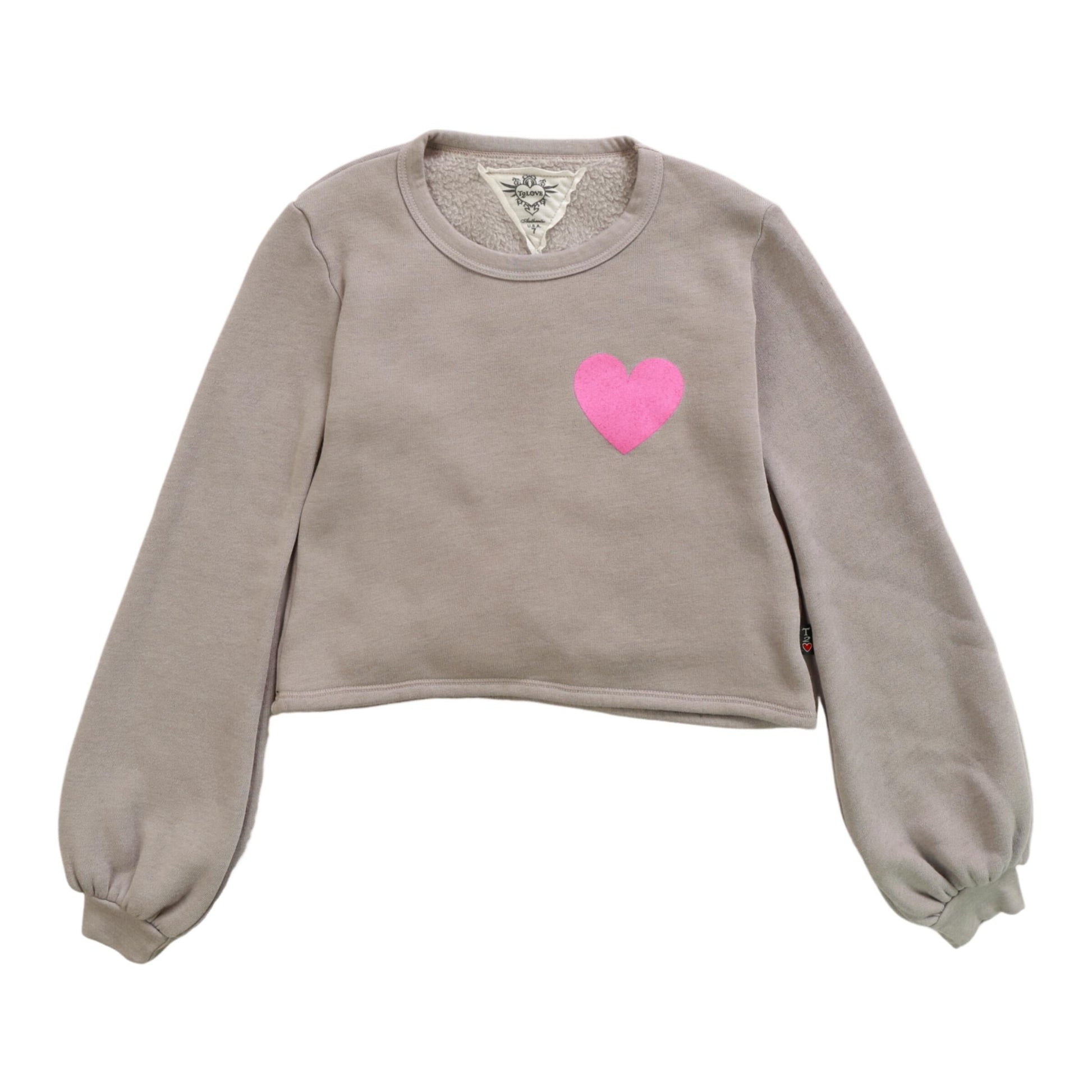 Puffy Long-Sleeve Crewneck Shirt (Mini Pink Heart Print)