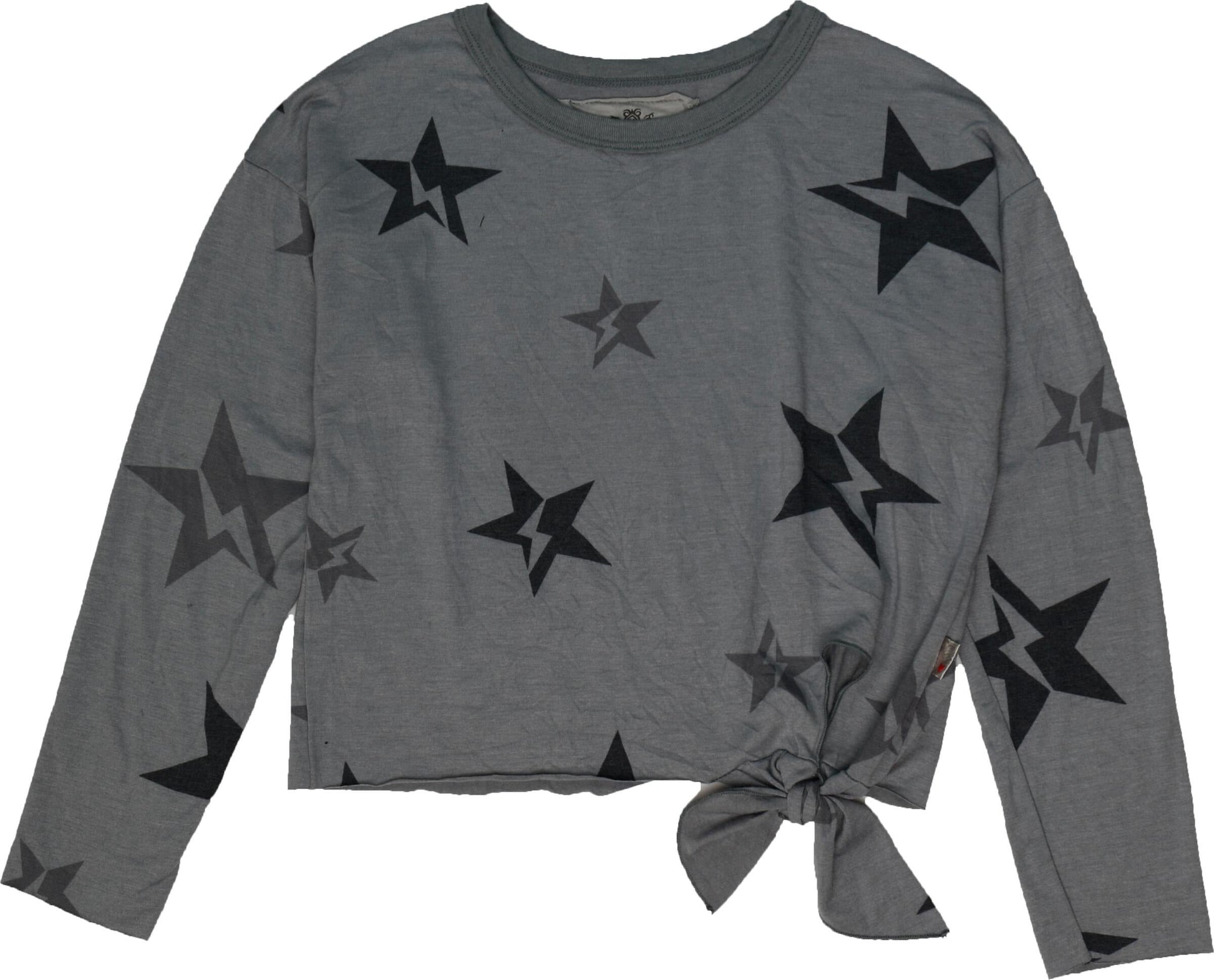 Side-Knot Crewneck Long-Sleeve Top (Star Bolt Pattern)